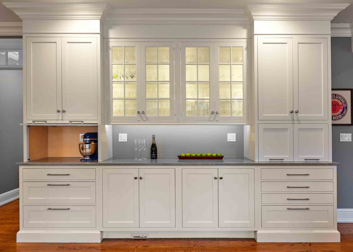 Adding small, strategically placed cabinets and drawers to conceal blenders, coffee makers and devices such as phones and tablets.